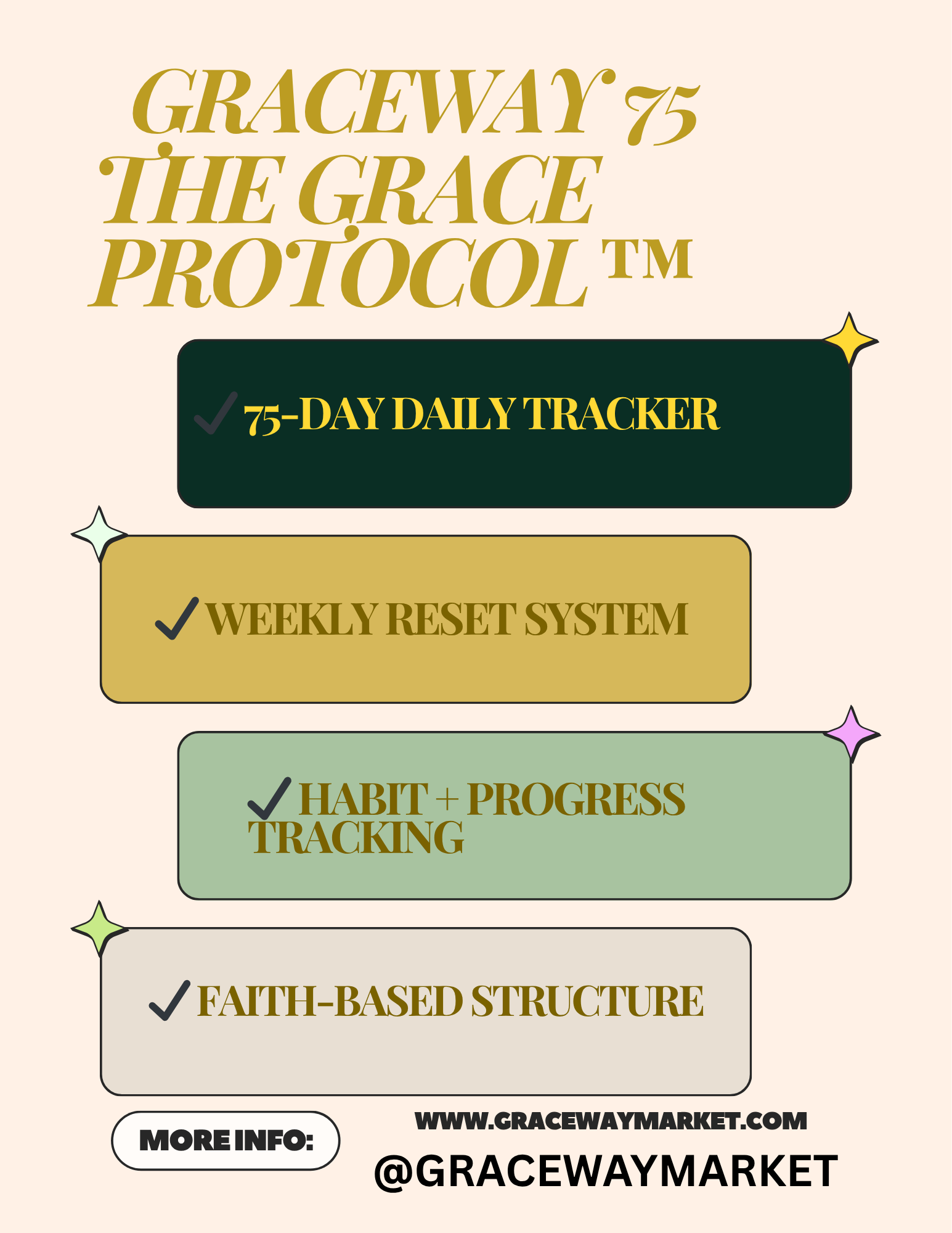 Graceway 75: The Grace Protocol™ is a faith-based discipline system designed to help you build consistency, strengthen your mindset, and transform your daily habits in 75 days.